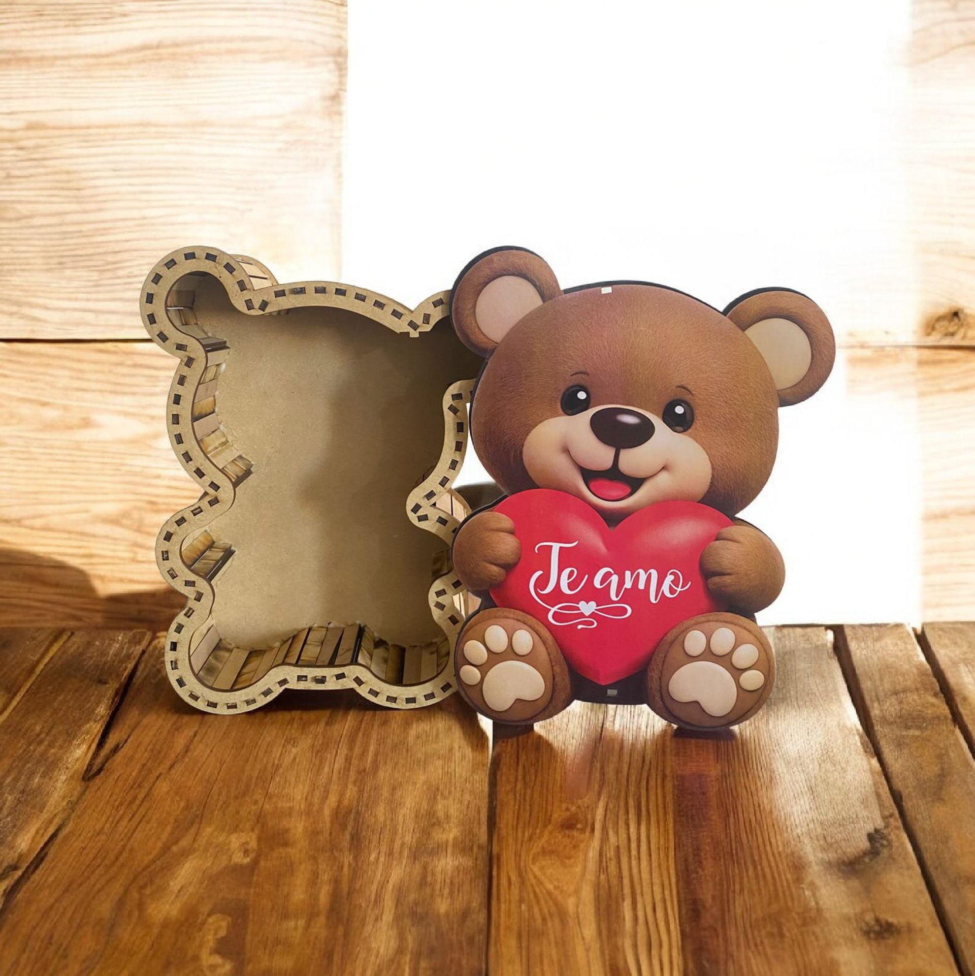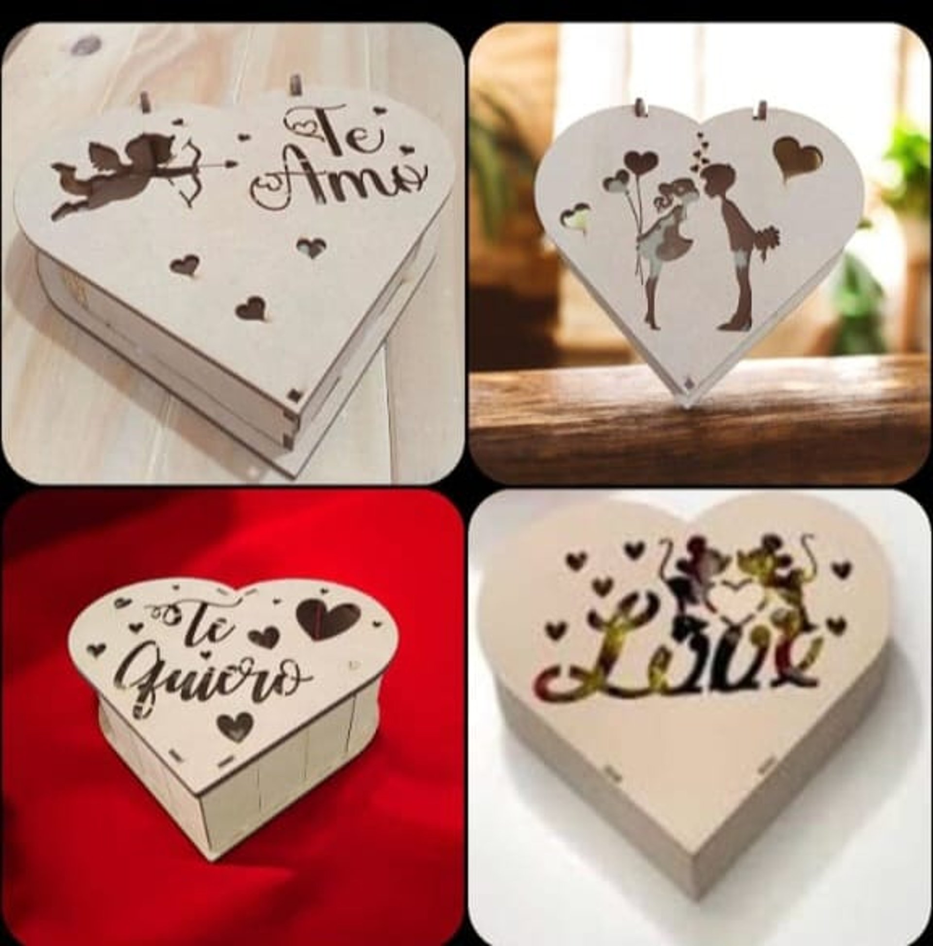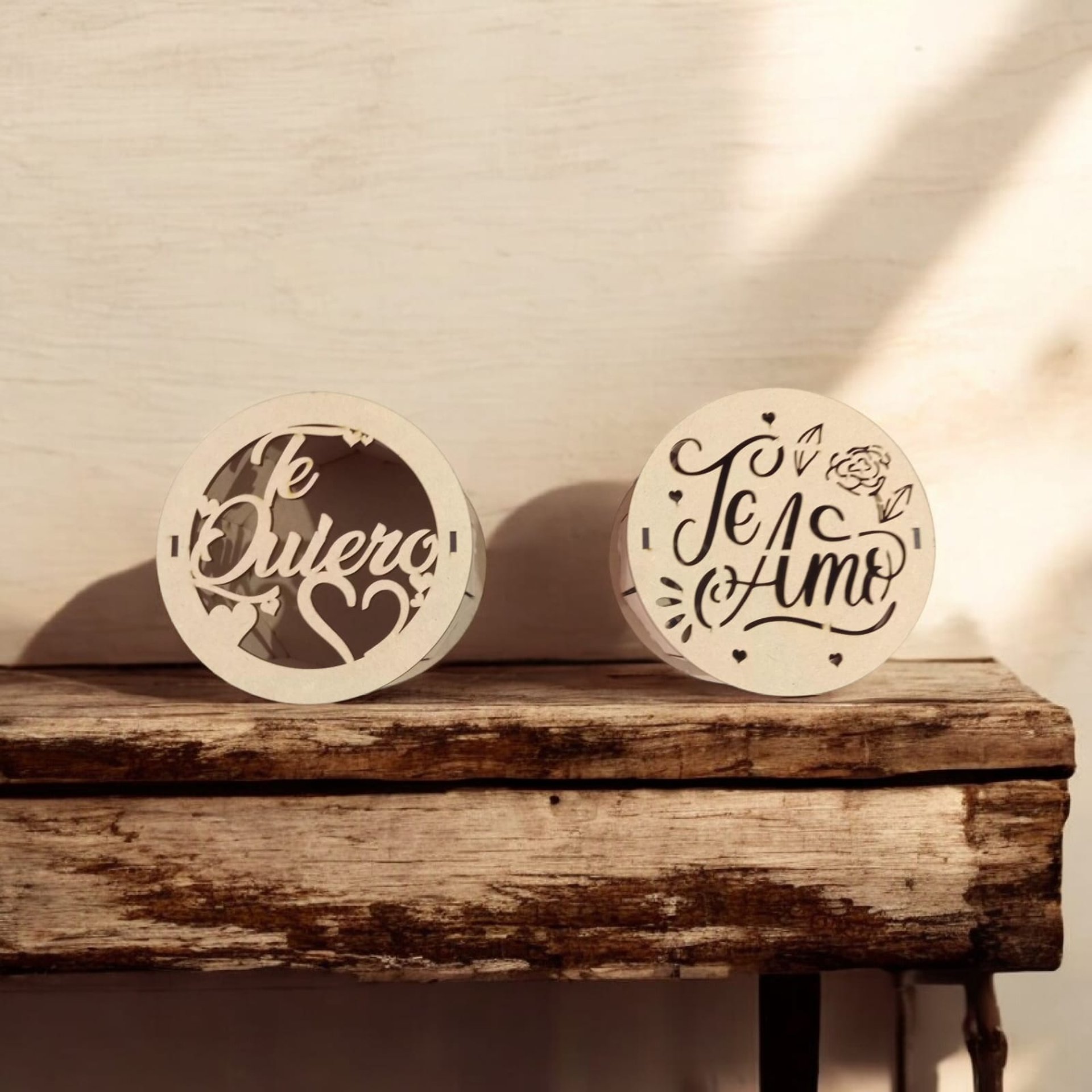 Souvenirs o centros de mesa de madera, diseñados para conmemorar eventos especiales, principalmente fiestas de quinceañeras. Están hechos de madera clara, cortada con láser, lo que les da bordes precisos y un acabado liso.
