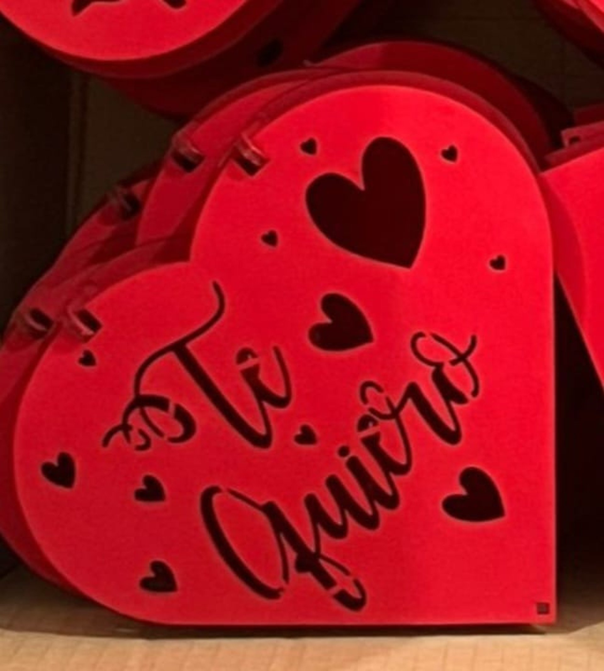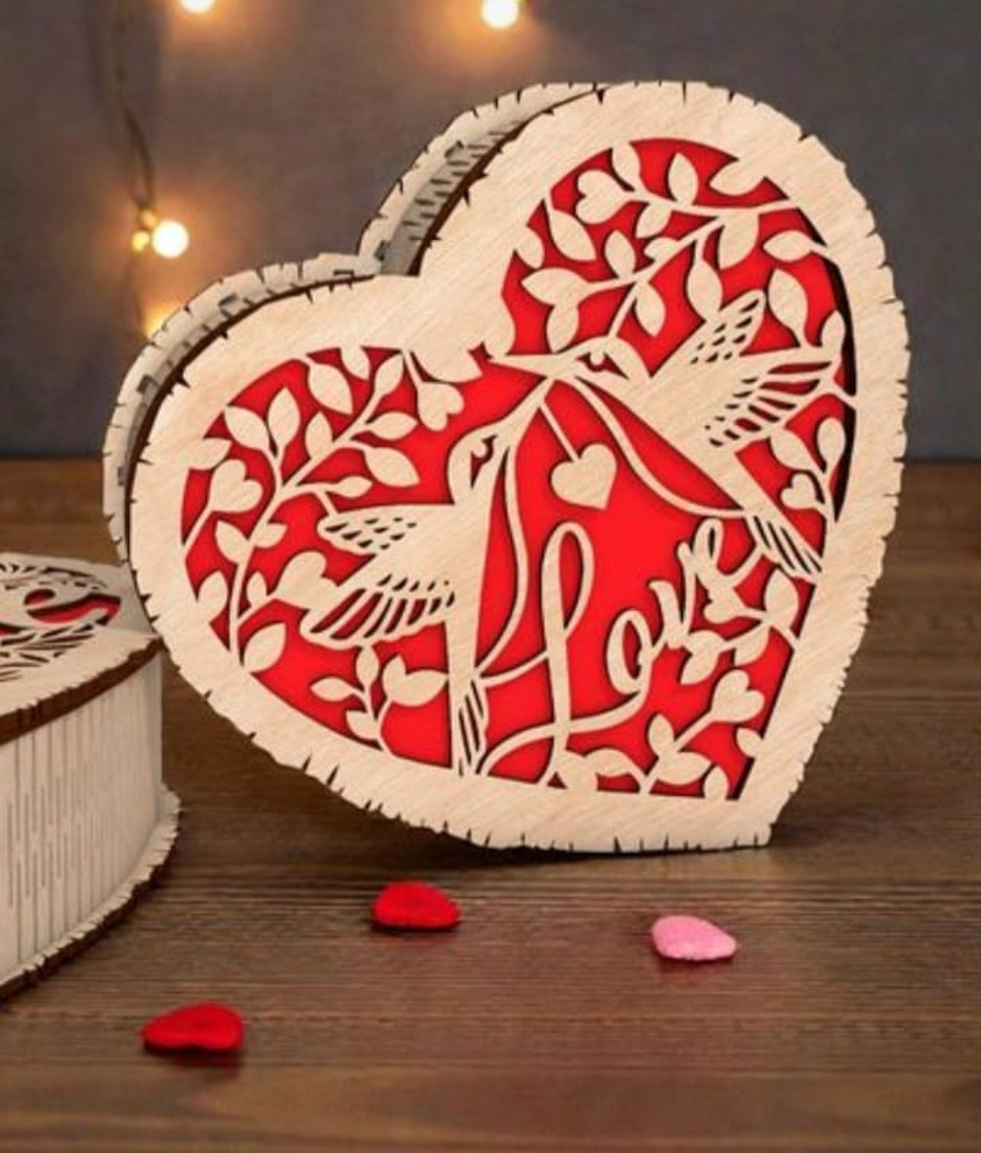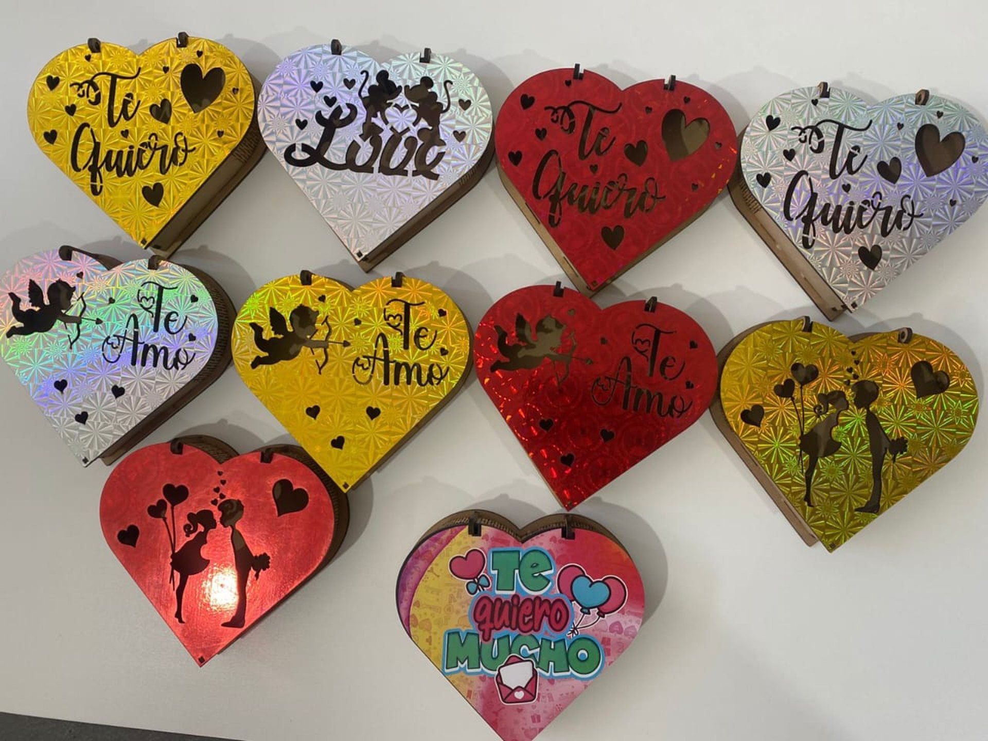 Souvenirs o centros de mesa de madera, diseñados para conmemorar eventos especiales, principalmente fiestas de quinceañeras. Están hechos de madera clara, cortada con láser, lo que les da bordes precisos y un acabado liso.